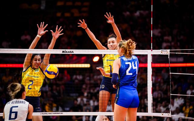 25年女排世锦赛结束了一场世纪大战。世界排名第一的意大利在两度落后的情况下,两度追平比分,最终以22-25/25-22/28-30/25-22/15-13险胜世界排名第二的巴西女排,晋级冠亚军决赛,将与土耳其女排争夺冠军。这也是意大利女排在国际排联赛事的35连胜。